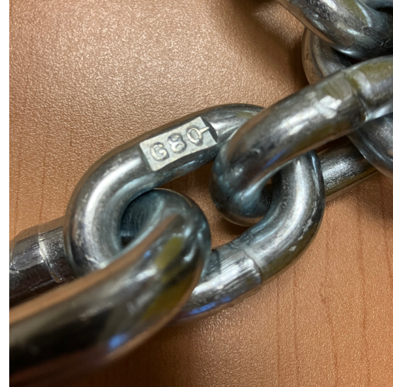 The chain is grade 80 and the hooks at the end of the chain are grade 70.