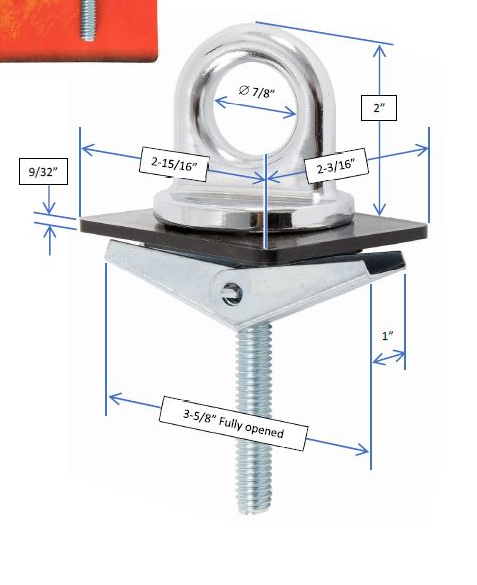 - Hole diameter has to be 1-1/16” for the folded anchor to pass through.