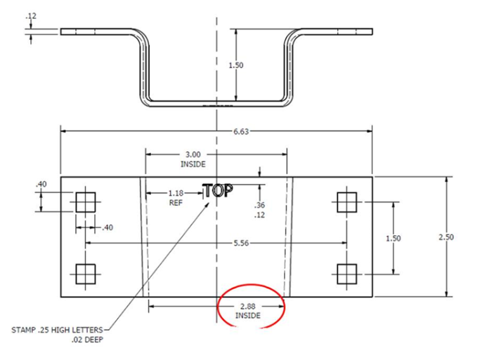 The 89323 tapered stake pocket dimensions are shown below.