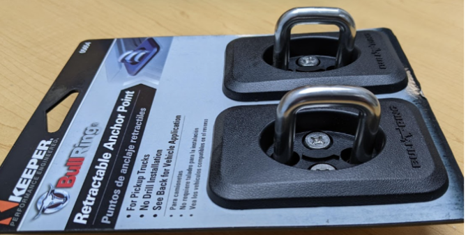 The Bull Ring® Universal Anchor Points are easy to use and install, no tools required. The oversized eye-ring retracts when not in use and has a UV resistant molded cover plate. The anchor point allows for quick rope and tie-down attachment for pickup trucks and trailers. Great for securing all types of cargo, such as furniture or sports equipment.