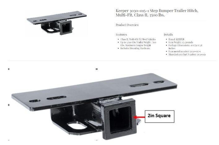3030-015 STEP BUMPER TRAILER HITCH, MULTI-FIT, CLASS II, 3500 lbs. - DISCONTINUED Denise August 26, 2024 20:42 Updated Comments 0 comments Please sign in to leave a comment.