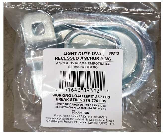 The Keeper® 2-3/4 in. Recessed Anchor Point has a 1 in. D-ring (no. 3 gauge wire). The Anchor Point is a convenient way to attach tie-downs, strap or rope to a pickup truck or utility trailer.