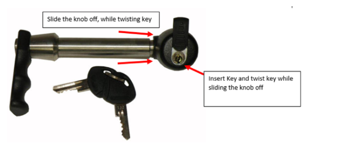 - Lock assembly faces 90 degrees from hitch pin for easy access