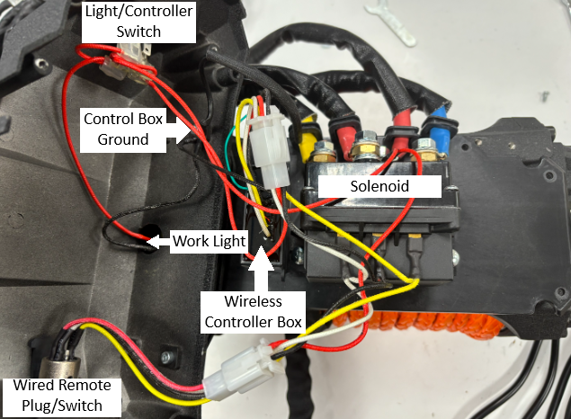 - Includes wireless remote with two fobs and a 15 ft. wired remote with LED work light