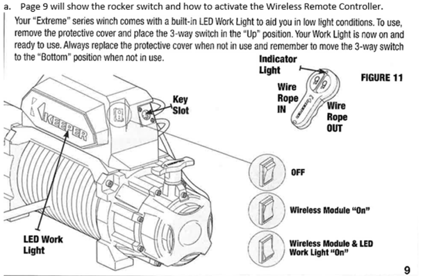 The wireless controllers for both KX9.5 Extreme and Bridge winches must be turned on at the winch.