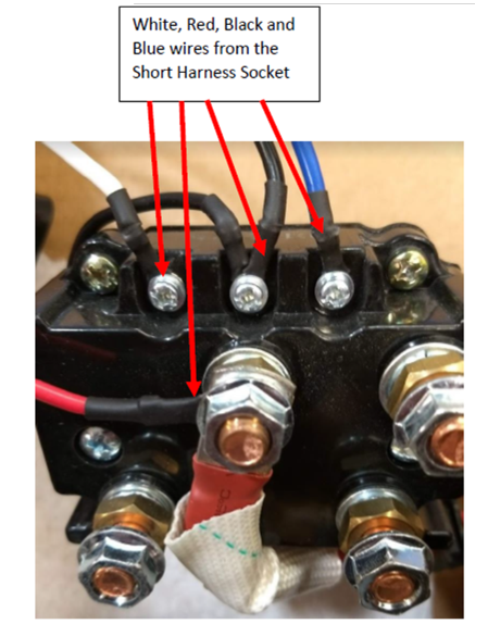 - The white (left hand small post) and the blue (right hand small post) are energized with positive to either retract or extend the winch.