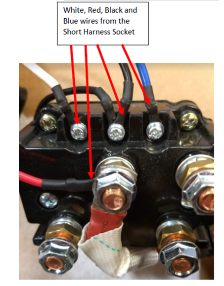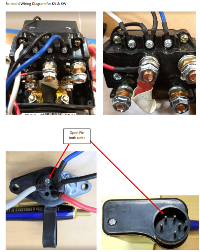 - Change the White and Blue wire on the solenoid, (BE VERY CAREFULL) this will reverse the winch’s direction. OUT will now be coming IN and IN will now be going OUT. But this will confirm if the solenoid has a one directional pole/contact failure.
