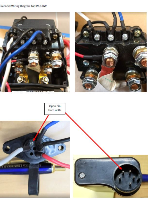 - Change the White and Blue wire on the solenoid, (BE VERY CAREFULL) this will reverse the winch’s direction. OUT will now be coming IN and IN will now be going OUT. But this will confirm if the solenoid has a one directional pole/contact failure.