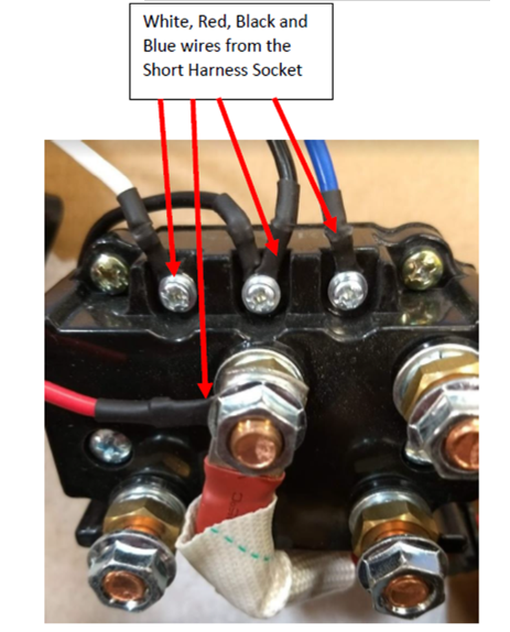 - The white (left hand small post) and the blue (right hand small post) are energized with positive to either retract or extend the winch.