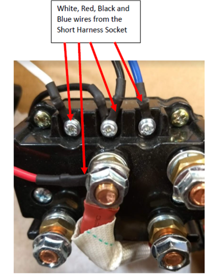 - Change the White and Blue wire on the solenoid, (BE VERY CAREFULL) this will reverse the winch’s direction. OUT will now be coming IN and IN will now be going OUT. But this will confirm if the solenoid has a one directional pole/contact failure.