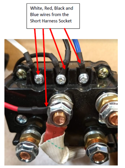 - The white (left hand small post) and the blue (right hand small post) are energized with positive to either retract or extend the winch.