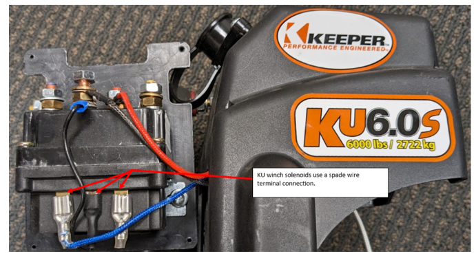 The KWR17036 Short Harness is a replacement for KW, KV and KU winch. On the KU winches Red Wire between Blue and White Wire does not get used and it can be cut off or capped with a wire nut (See Image Below). Only the Red Wire between Black and Blue is used.