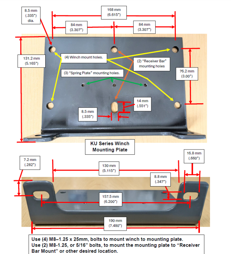 The curved plate is held onto the mounting plate with 3 screws and locking washers. The curve of it will be orientated towards the rear of the winch and keeps tension on the rope when the unit is put into Free-spool mode (clutch released), this prevents the rope from doing what we call “Birds Nest” or releasing all of its tension and making a big mess of the rope. This will apply a small amount of pressure against the winch / mounting plate when the customer attempts to mount it with the mounting bolts.