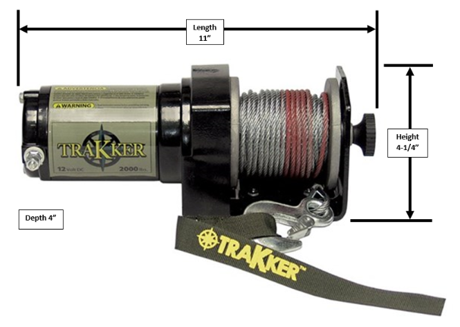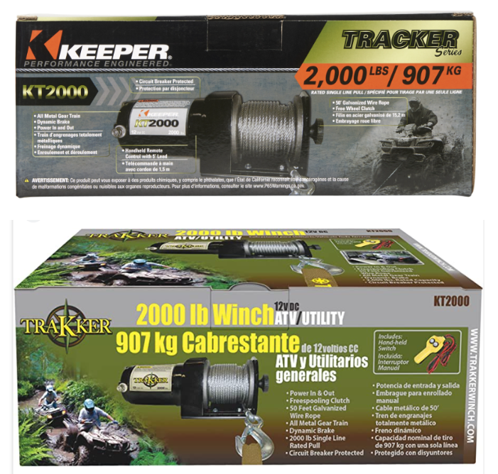 The Keeper KT2000 Electric Winch is designed for all-purpose use, great for the house, farm, and ATV. The electric winch easily connects to 12V battery using the included wiring harness. It features a handheld control for power in/out operation of the permanent magnet motor and quickly release the wire rope with the pull/turn free-spool clutch knob. The winch is constructed to permanently mount to the trailer or ATV. The tensioner plate comes preinstalled.