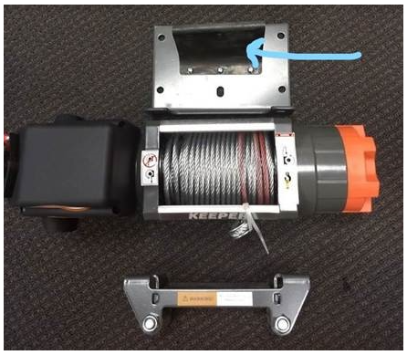 The curved plate is held onto the mounting plate with 3 screws and locking washers. The curve of it will be orientated towards the rear of the winch and keeps tension on the rope when the unit is put into Free-spool mode (clutch released), this prevents the rope from doing what we call “Birds Nest” or releasing all of its tension and making a big mess of the rope. This will apply a small amount of pressure against the winch / mounting plate when the customer attempts to mount it with the mounting bolts.