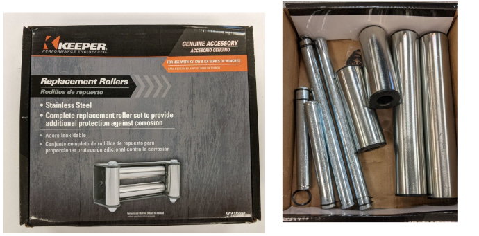 The Keeper Stainless Steel replacement roller set is a complete replacement roller set that provides additional corrosion protection. This replacement is compatible with Keeper KV, KW and KX series winches. Hardware and mounting bracket are not included, please use existing hardware and mounting kit.