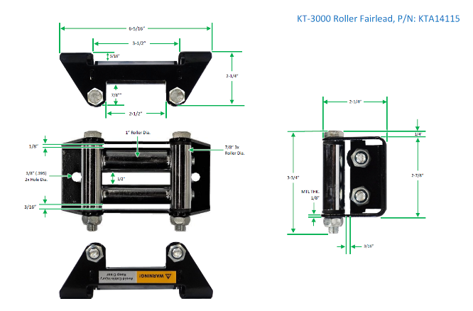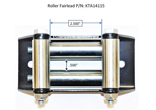 The ATV 4-Way Roller Fairlead is recommended to fit KT2000, KT3000 and to be mounted on the KTA502 Flat Mounting Plate. The 4-Way Roller Fairlead helps extend the lifespan of the galvanized wire rope and improve safety while operating the winch.